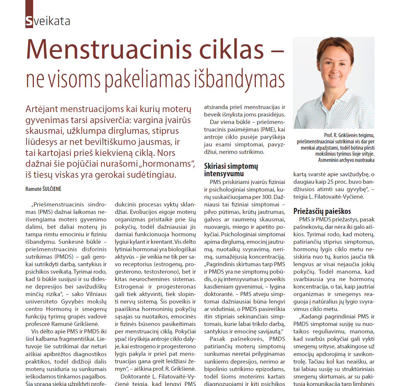 Mokslo sala organizuojamoje konferencijoje mūsų grupės vadovė prof. dr. Ramunė Grikšienė skaitys pranešimą „Moters smegenų ir hormonų sąveika: biologija, kuri formuoja mūsų unikalumą“.